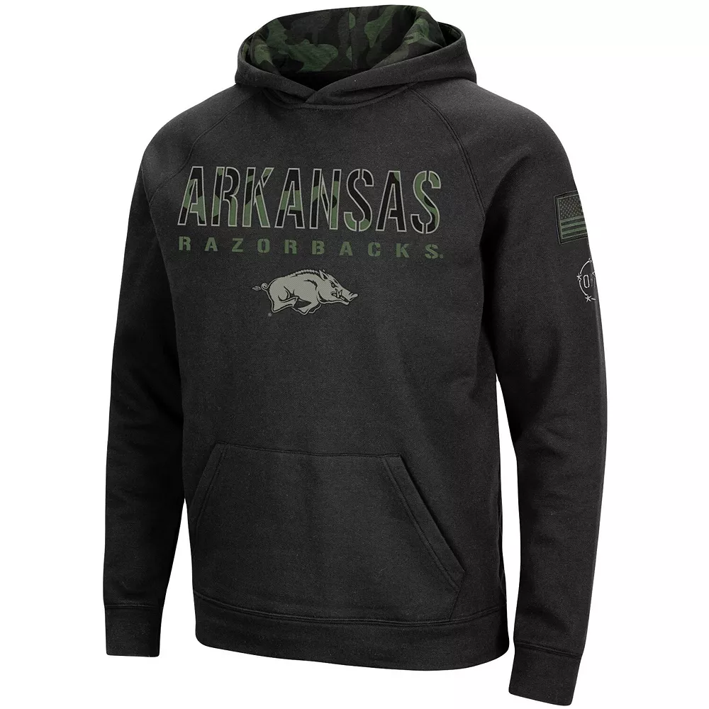 When the weather starts to cool, you still want to show your appreciation for those who serve and your Arkansas Razorbacks fandom. Reach for a cozy outer layer with this OHT Military Appreciation raglan pullover hoodie from Colosseum. With crisp Arkansas Razorbacks graphics and camo accents, this midweight hoodie puts your support on full display.