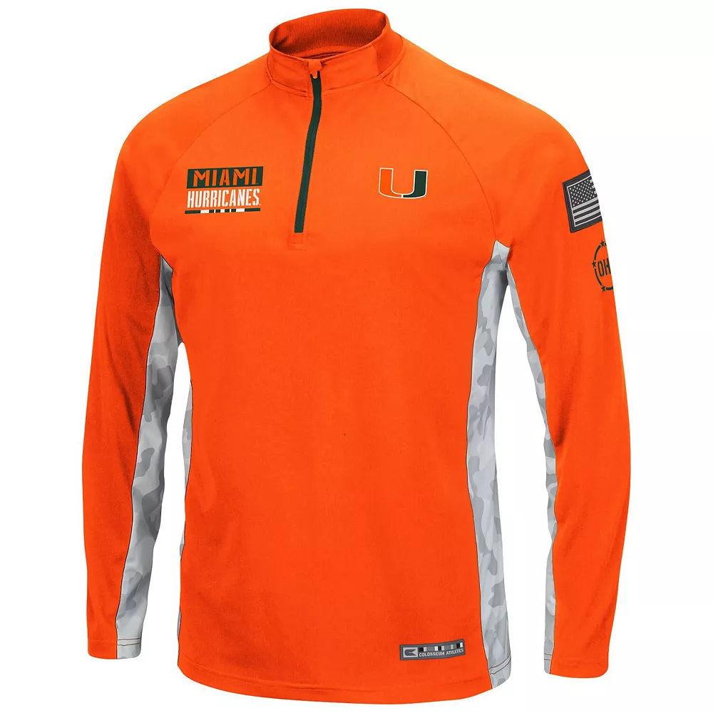 Men’s Colosseum Orange Miami Hurricanes OHT Military Appreciation Snow Cruise Raglan 1/4-Zip Jacket