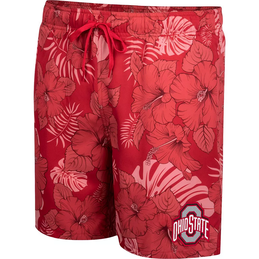Bring your Ohio State Buckeyes spirit to the beach or poolside with these Colosseum Dude Swim shorts. They feature an adjustable waistband for the perfect, comfy fit, and convenient pockets to hold small items. Also, the lightweight material and interior lining provide a breathable feel. Bold Ohio State Buckeyes embroidery on top of the tropical sublimated design shows that you always carry a piece of fandom with you.