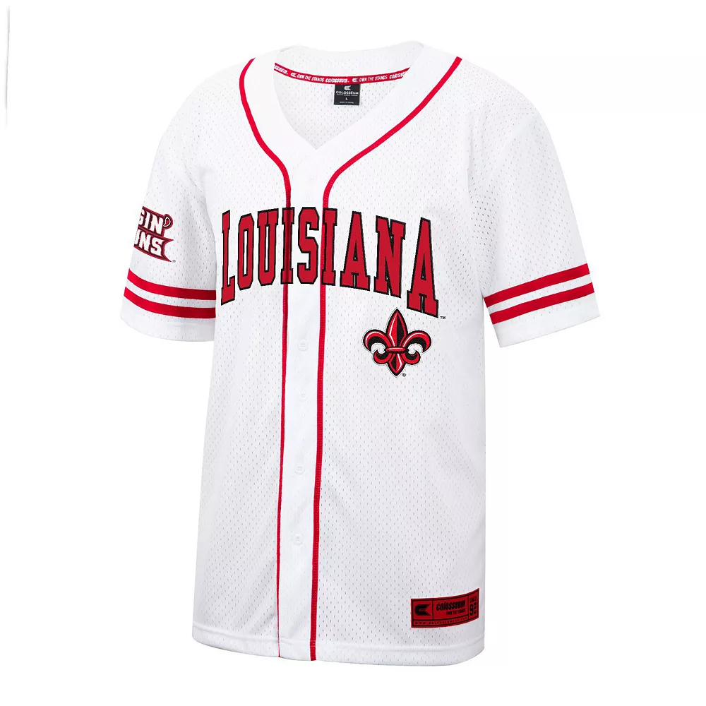 As a free-spirited Louisiana Ragin’ Cajuns fan, this Colosseum full-button baseball jersey is the perfect way to convey your loyalty. It features a lightweight design with its breathable mesh fabric. On top of that, the sewn-on stripes give flair to the classic Louisiana Ragin’ Cajuns graphics.